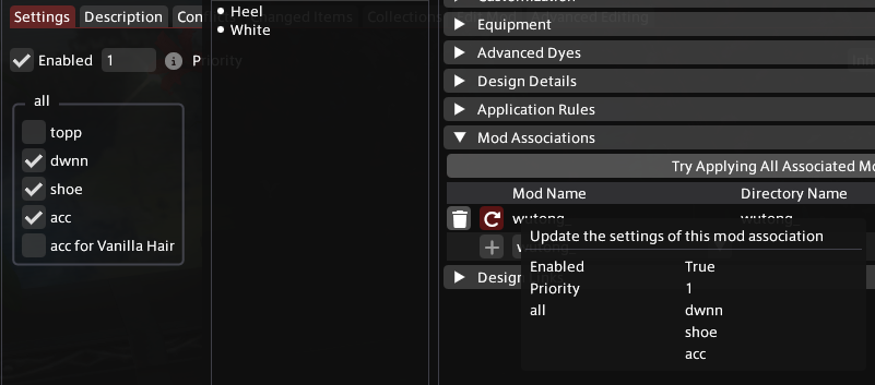 이 모드의 설명을 보면 특정 아이템에만 이 모드를 적용하기 위해 Glamourer의 Mod Associations 기능을 이용하라고 돼 있다.
