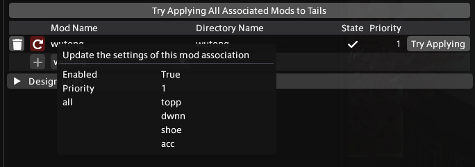 This tab can store information about specific mods associated with this design.