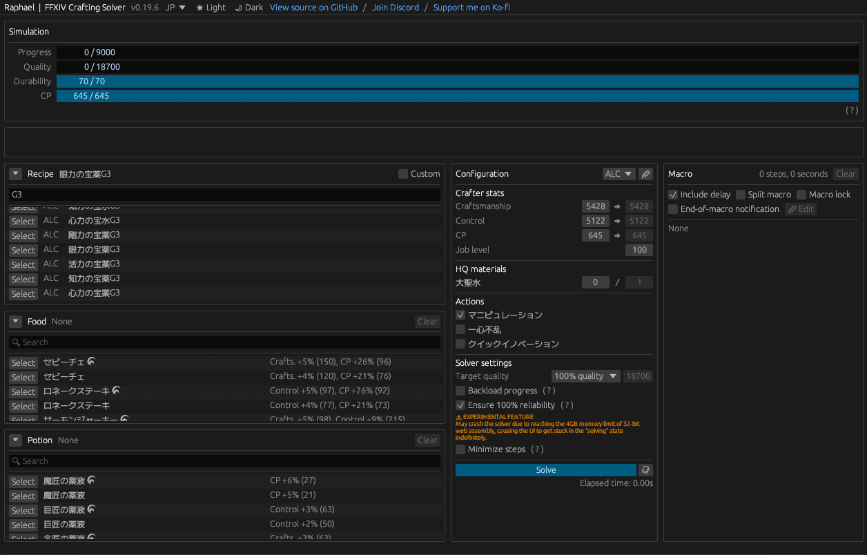 KonaeAkira가 제작한 FF14 제작 매크로 솔버다.