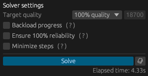 여기서 목표 퀄리티는 얼마인지, 어떤 경우에서도 퀄리티 100%를 보장할지 등의 조건을 설정할 수 있다.