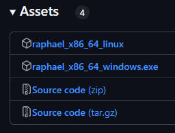릴리즈 페이지로 가면 위와 같이 ``raphael_x86_64_windows.exe``를 다운받아 실행할 수 있다.