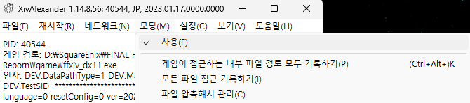 이제 XivAlexander의 메인 윈도우에 SourceHanSansK.json 파일을 드래그해 넣는다.